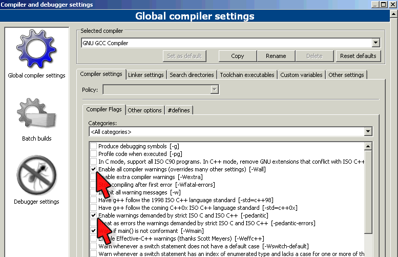 - Enable warnings demanded by strict ISO C (-pedantic)