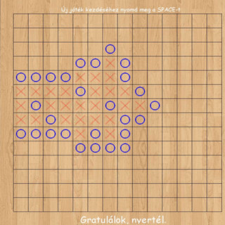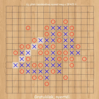Ez a játék első ránézésre egy amőba... és ez félig igaz is. Az egyik játékos, az iksz, tényleg amőbázik, de az ellenfele viszont az atari-go szabályai szerint tud nyerni. Így érthető a játék neve, ez a két játéknak a keresztezése (saját találmány). A program lehetőséget nyújt gép elleni játékra is, aminek a nehézsége állítható. A gépnek (valamilyen érthetetlen okból) jobban megy a matematikailag legelőnyösebb lépés kiválasztása, mert mintha több lépést tudna számba venni adott idő alatt. 60%-os nehézség mellett negyedjére sikerült olyan screenshotot összehoznom amire az volt írva hogy "Gratulálok nyertél."