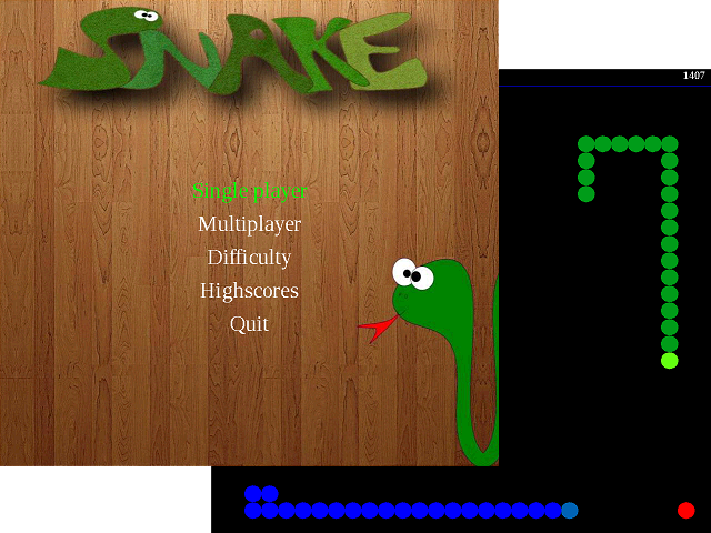 A program a jól ismert Snake nevű játékot valósítja meg, melynek elkészítéséhez SDL-t használtam. A játék tartalmaz egy- és kétjátékos módot is. A játék célja a szokásos: az eledeleket felszedve minél nagyobbra növekedni anélkül, hogy a falnak, önmagának vagy esetleg a másik kígyónak ütközne a kígyó. Egyjátékos módban, megfelelő pontszám elérése esetén a játékos felkerülhet a nehézségi szintnek megfelelő dicsőséglistára. Kétjátékos mód esetén a játékosok a kurzormozgató nyilakkal és a WASD billentyűkkel irányíthatják a kígyójukat.