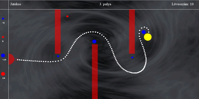 A program egy olyan játék, ahol a felhasználó feladata, hogy eljuttasson egy pozitív töltést a célba. A töltést egy ágyúból lehet kilőni, ami a pálya bal szélén található. Az ágyú szöge állítható. A pályán különböző akadályok és töltések nehezítik a feladatot. A játékos szintén tud töltéseket elhelyezni a pályán, melyek segítségével célba tudja juttatni a töltést. A piros töltések a pozitívak, míg a kékek a negatívak. Mivel a kilőtt töltés pozitív, a kékek vonzzák és a pirosak taszítják. A program kiírja egy fájlba, hogy melyik pályát hány lövésből sikerült eltalálni, és azokat be is tudja olvasni.