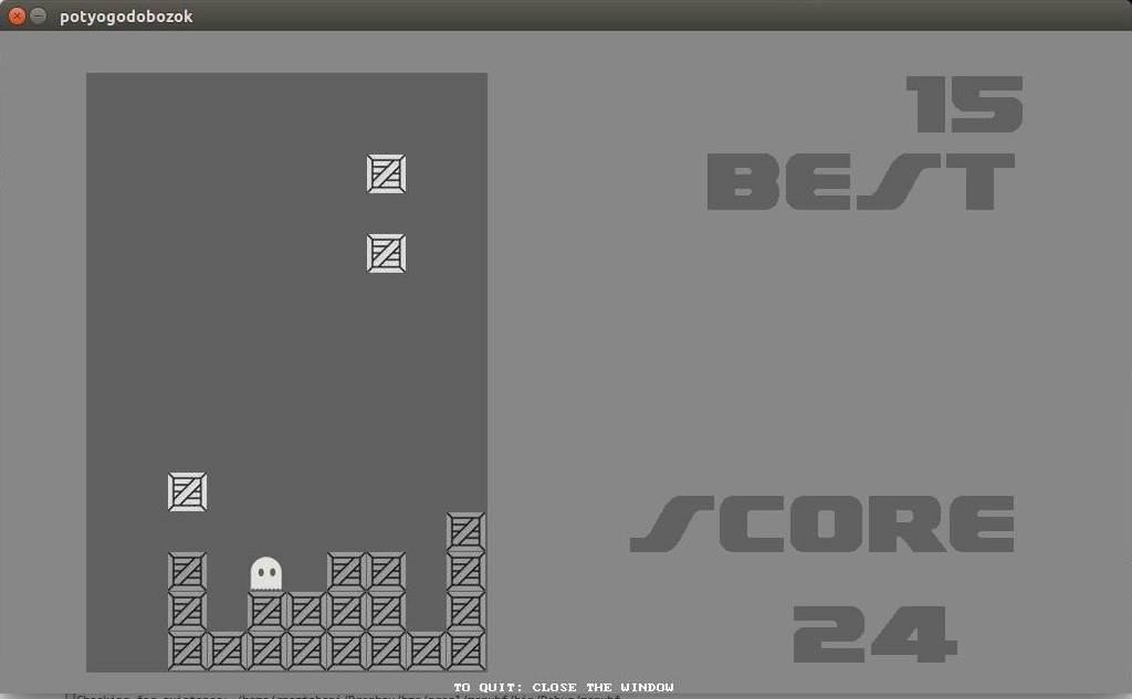 A program alapötlete egy régi telefonos játékon alapul. Dobozok esnek fentről egyesével és játékos feladata, hogy a kis szellem alakú karakterrel a dobozokat tologatva minél feljebb jusson. A karakter egy doboz magasságba feltud ugrani. Minden belépő dobozért egy pontot kap a player. A játék véget ér ha a játékosra egy doboz esik vagy ha beszorul. Tovább fejleszthető még rengeteg kis aprósággal ami nagyban javítaná a játék élményt (pl.:avatar választás, robbanó doboz, tetris szerűen minden teli sor eltűnik...).