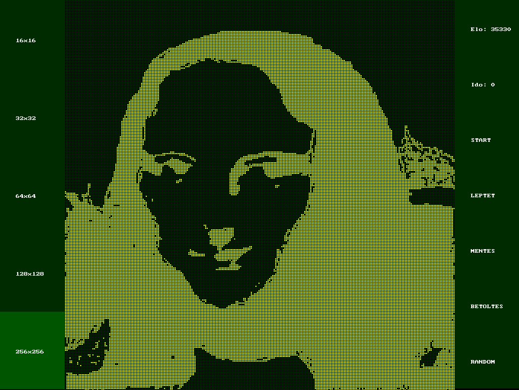 Én egy életjáték szimulátort hoztam létre, ahol meghatározott pályaméreteken lehet tetszőleges alakzatokat létrehozni, majd lefuttatni rajtuk a szimulációt. Úgy oldottam meg, mintha a négyzetrács egy vászon lenne, amire rá lehet rajzolni az élő cellákat, illetve ki lehet őket úgymond radírozni. Ezért megpróbáltam egy Mona Lisára valamennyire hasonlító rajzot elkészíteni, és hát a képen látható módon sikerült.