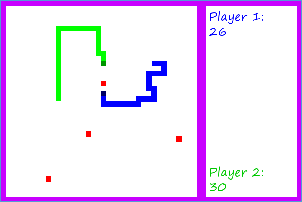Az általam készített kígyós játékban van lehetőség egy- és kétszemélyes módra is, a játékban több, egyre nehezedő, egyre több falat tartalmazó pálya van. A cél minél több almát gyűjteni, amitől a kukac hossza nő, a pontszámot ez adja. Kétszemélyes játék esetén a végén a hosszabb kukaccal rendelkező nyer. Az elért eredményeket a játék tárolja, és a legjobb 10 felkerül a dicsőség listára is.