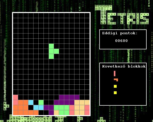 A házim egy hagyományos menüvezérelt Tetris játék, SDL-ben elkészítve. A menüből a játékon kívül is elérhető a ranglista, amely tartalmazza a 10 legjobb pontszámot elért felhasználó nevét és pontszámát, illetve a beállításokon keresztül tudjuk változtatni a pálya szélességét és magasságát. A játékban egy párbeszédablakon keresztül láthatóak a soron következő blokkok, szüneteltetés esetén is itt ajánlja fel a program a további lehetőségeket, illetve itt adhatjuk meg a játék végén a becenevünket, amellyel el szeretnénk menteni a pontszámunkat.